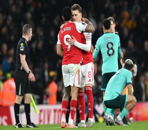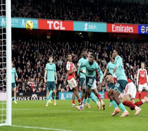 但迟迟不能打进锁定胜局的进球,阿森纳还得提心吊胆。通常,怕什么来什么,刚刚进入伤停补时,替补登场的阿洛科达尔就头槌为狼队扳平了比分,让整座酋长球场陷入死一般的沉寂。