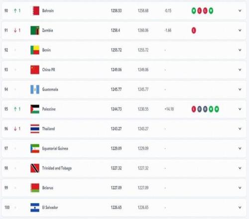2025年最后一期FIFA排名:前10无变化中国仍排世界第93